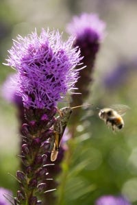 a variety of plants–annuals, perennials, grasses, shrubs, and trees–mostly locally native if possible.