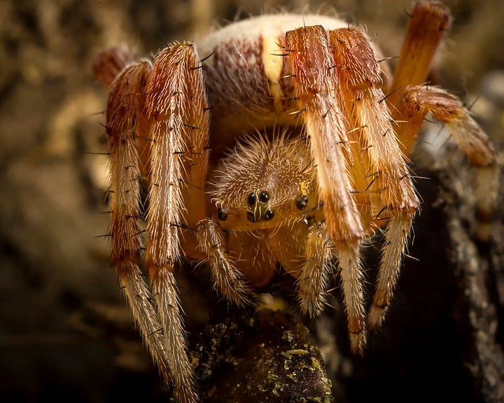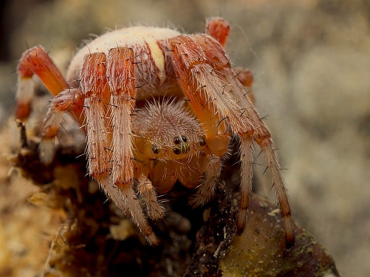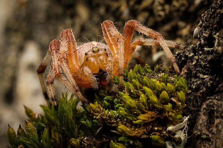 Some of the marbling is still visible on the forepart of the abdomen, but otherwise you would think it was a different species of spider! I released this one on to a fallen log and took some more photos before she escaped. Quite the cutie!