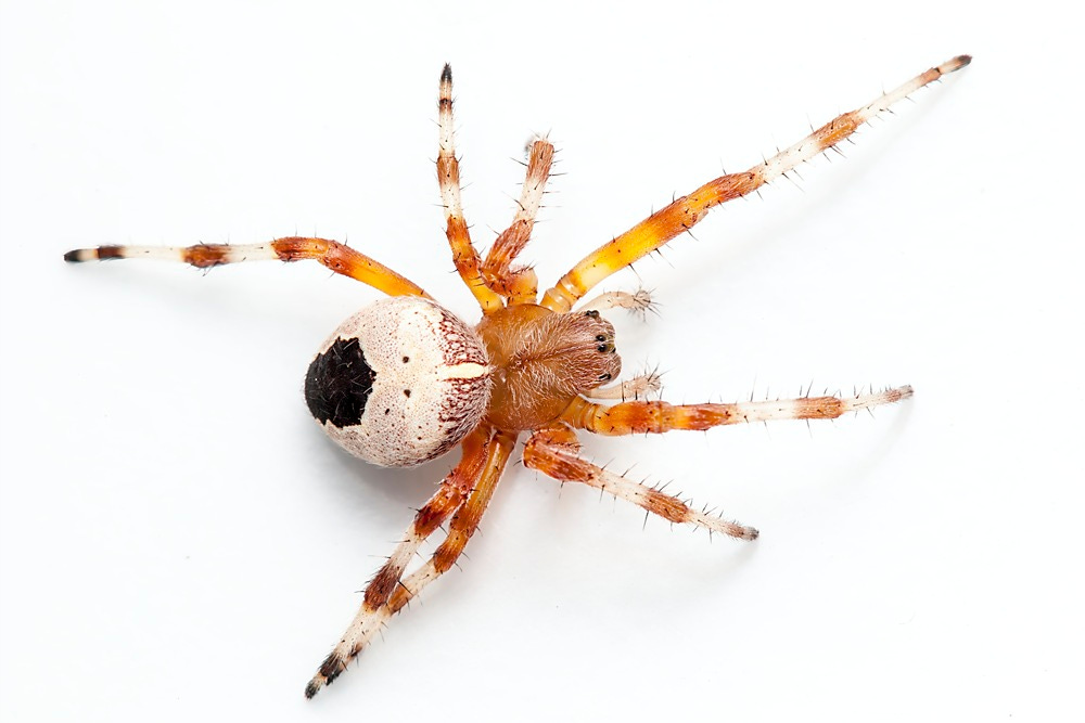 While wandering through the University of Alberta Botanic Garden many years ago, I was given an unusual spider to photograph. It was an Araneid that I had not seen before, with a bright white abdomen marked with a dark patch at the rear. After getting an ID from the late arachnologist, Robin Leech (1937 – 2016), I was surprised to find out this was none other than a variety of the wide-spread Marbled Orb Weaver. However, the difference in pattern is amazing…